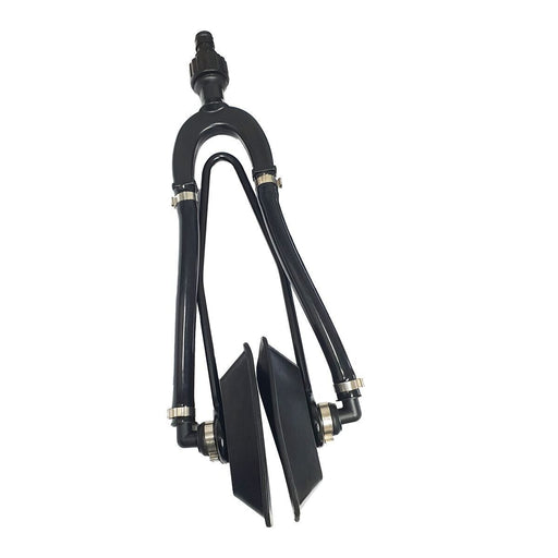 Black rubber, cup style, used to feed water into the cooling system of an engine to flush out salt, sand and other debris after use. The unique dual flow design maximises the amount of water available. Uses a sturdy powder coated steel spring to powerfully clamp on to the outboard’s leg and seal the rubber, maximizing water pressure.